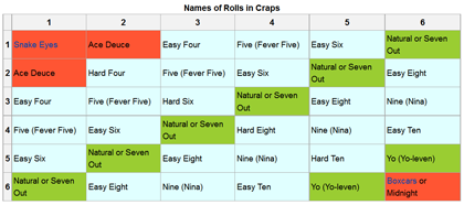 Table 1 lists all the possible outcomes with their appropriate probability and payout odds. One important property of rolling two dice is that no matter what the outcome on the first die, you can always make a Seven with the second die. This is not the case for the rest of the numbers and makes Seven the easiest number to roll. For example, if a 1 appears on the first die then the only possible total outcome with the second die is anywhere between 2 to Seven. If a 6 appears on the first die then the total outcome can only be from Seven to 12.